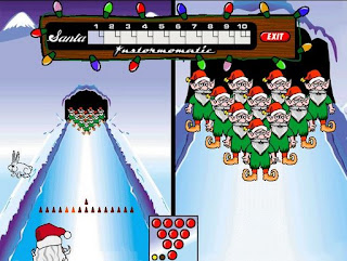 Here is another fun one. The first time I came across this game was a number of years ago. I’ve looked for a flash version of this game, but it only exists as a download. It is a cool little game where the elves go on strike so Santa places them on a bowling lane and bowls them down.